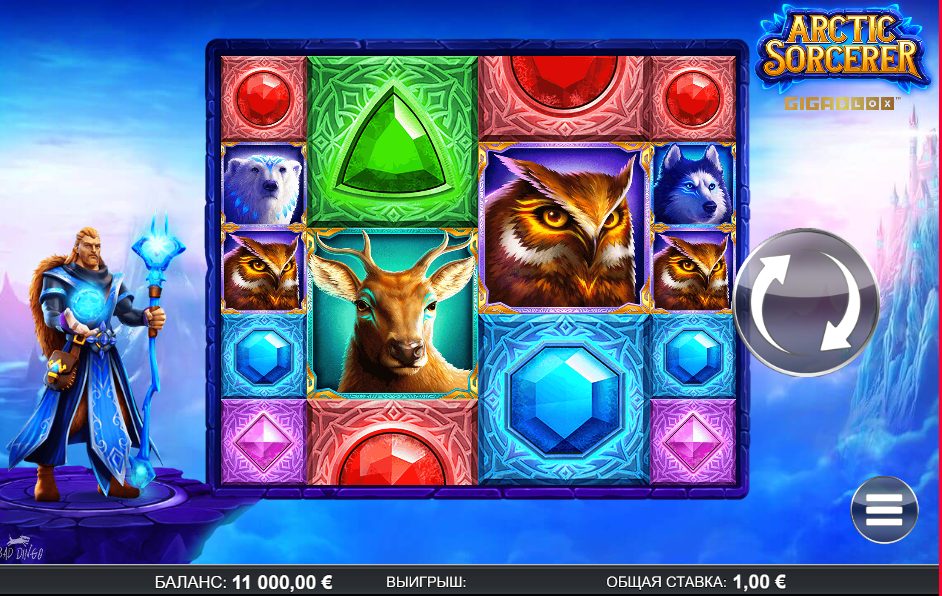 The game features a mystical arctic theme with symbols such as polar bears, ice crystals, and the powerful sorcerer himself. The Gigablox mechanic adds an extra layer of excitement to the gameplay, as large blocks of symbols can appear on the reels to create massive wins.