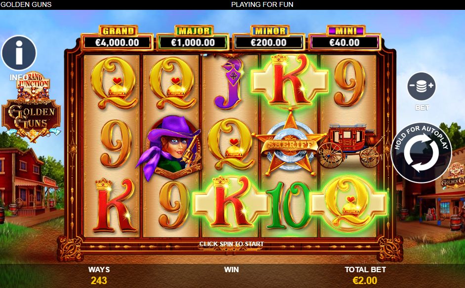 How to play Grand Junction Golden Guns: To play Grand Junction Golden Guns online casino slot game, simply place your bet and spin the reels. The game features multiple paylines and various betting options to cater to different preferences.